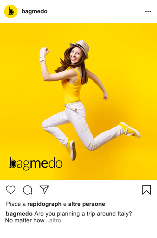 Oggi i social network sono popolati di foto e storie di viaggi, ecco perché abbiamo attivato campagne e piani editoriali di instant marketing studiate ad hoc per diffondere l’awareness sul brand BagMeDo.