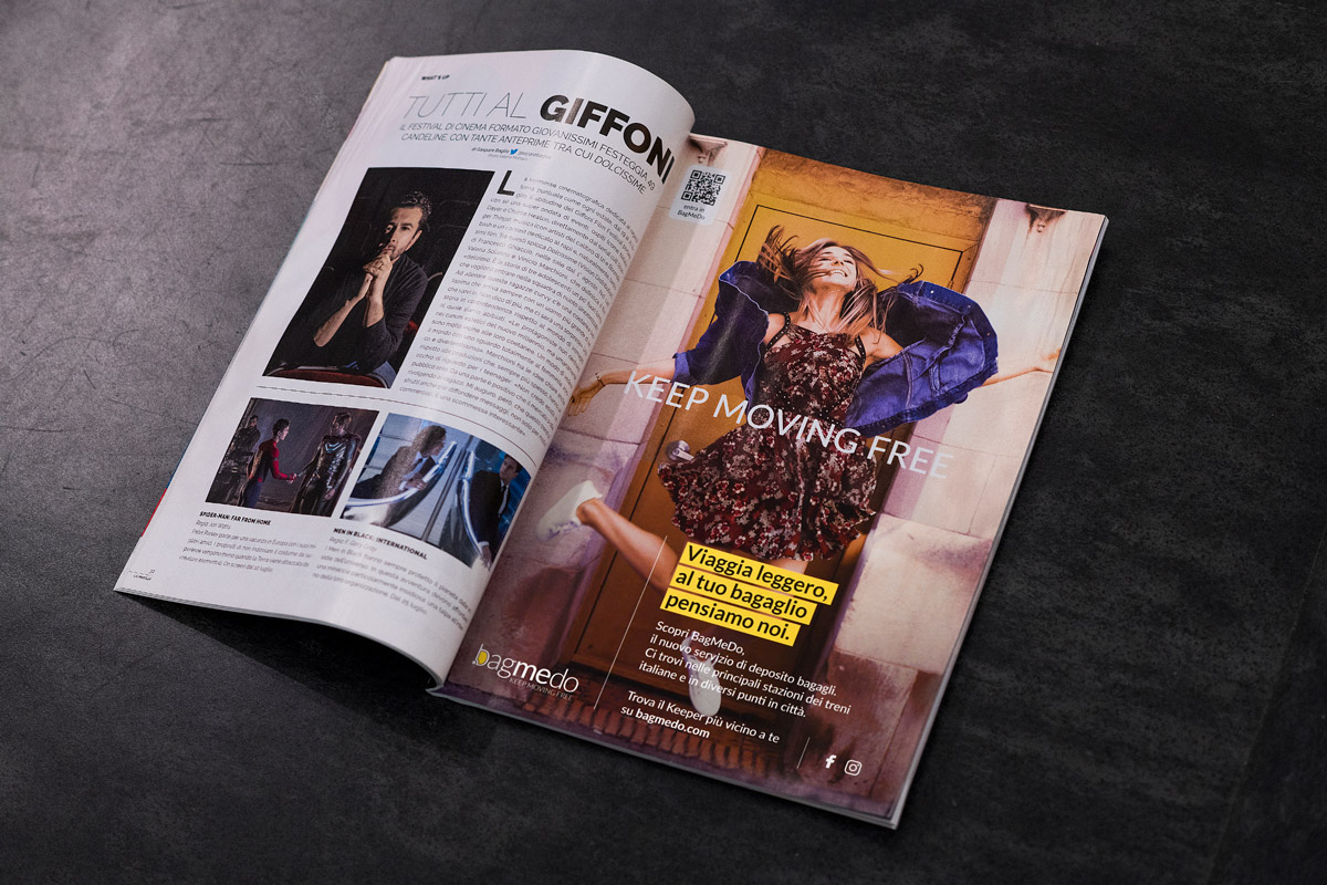 «Keep moving free»: la campagna di advertising racconta l’esperienza del viaggiatore. Abbiamo individuato nel salto il gesto caratterizzante di BagMeDo, la massima espressione di un movimento libero e leggero. Abbiamo puntato ai bagagli dei viaggiatori di Trenitalia con la nostra uscita sulla rivista LaFreccia.