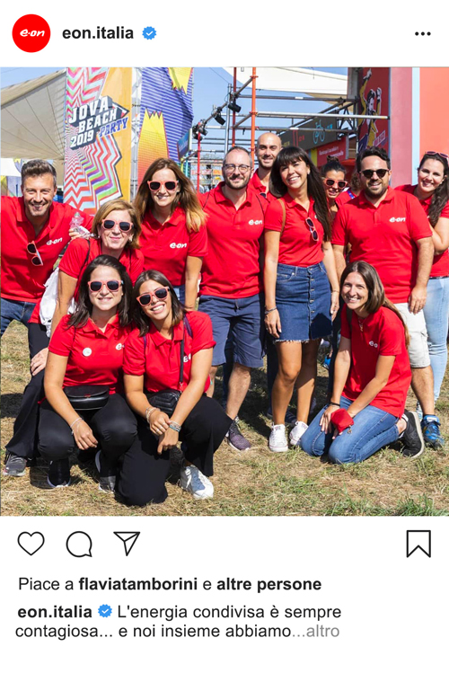 E.ON insieme a Jovanotti per un mondo più verde e più blu. L’azienda è stata partner ufficiale del Jova Beach Party in tutte le sue tappe. Abbiamo accompagnato i dipendenti in questa avventura musicale e dato valore alla loro presenza durante i concerti, supportandoli nella diffusione di messaggi green su tutti i canali social.